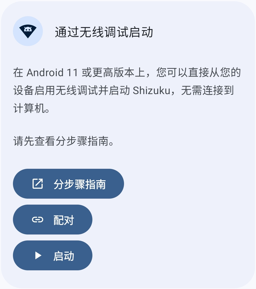 配对完成后,再次打开 Shizuku,点击“启动”