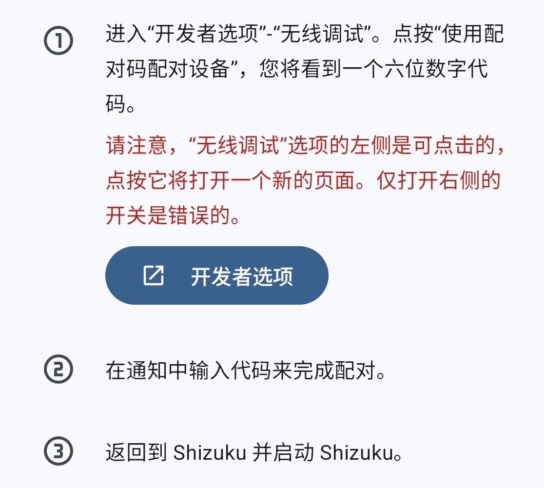 安装并打开 Shizuku,手机连上任意Wifi(热点),点击“配对”